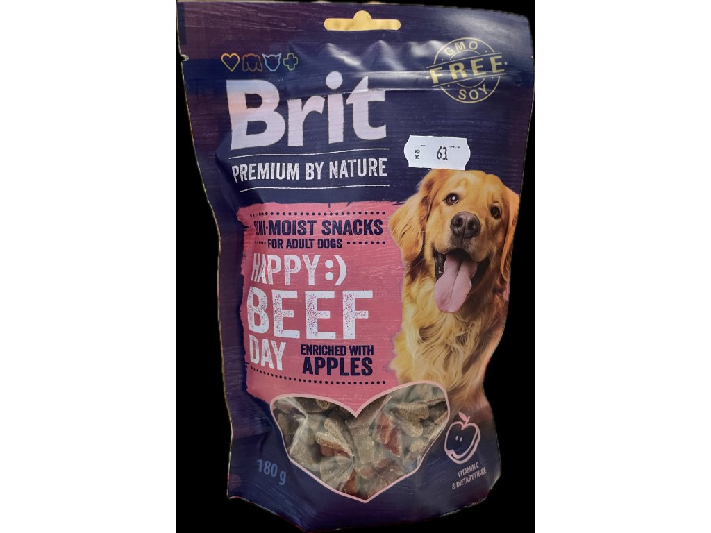 Poloměkké pamlsky Brit Happy Snacks s hovězím masem a jablky jsou chutnou a zdravou odměnou pro psy všech velikostí.