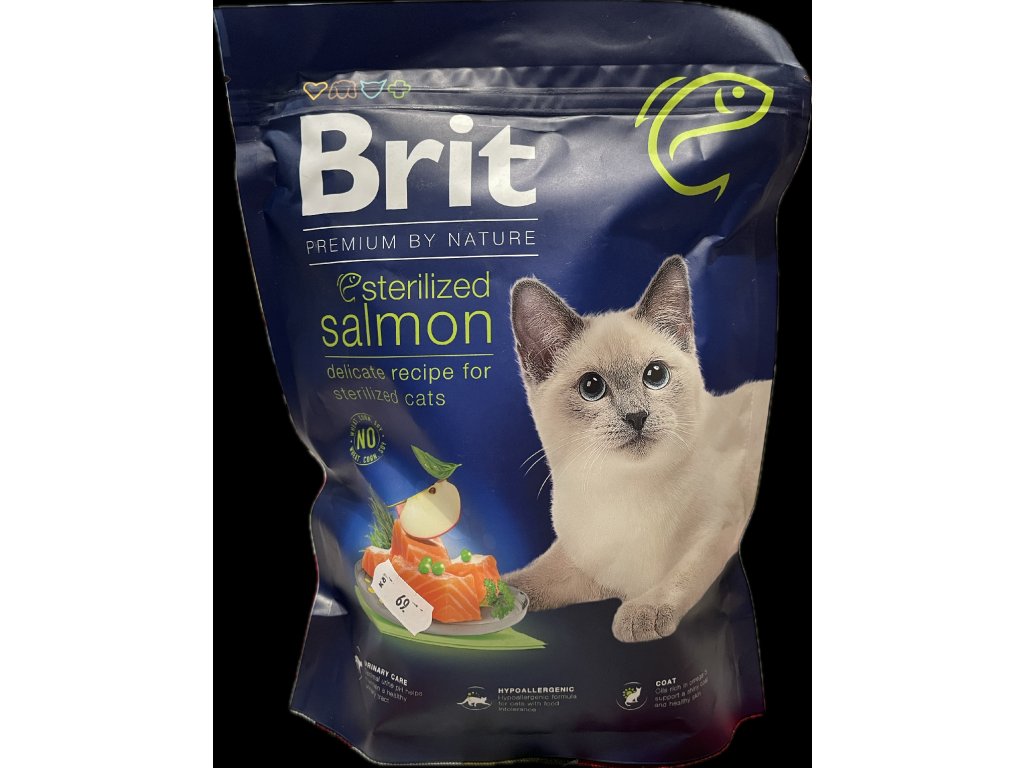 Brit Premium by Nature Sterilized Salmon je kompletní superprémiové krmivo pro dospělé kastrované kočky s citlivým zažíváním. Základem receptury je kvalitní dehydrovaný losos (28 %) a krůta (10 %), které jsou bohatým a snadno stravitelným zdrojem živočišných bílkovin. Přídavek rýže a sušené jablečné dužiny zajišťuje optimální trávení, zatímco bylinky jako rozmarýn, hřebíček, kurkuma a citrusy působí jako přírodní antioxidanty.