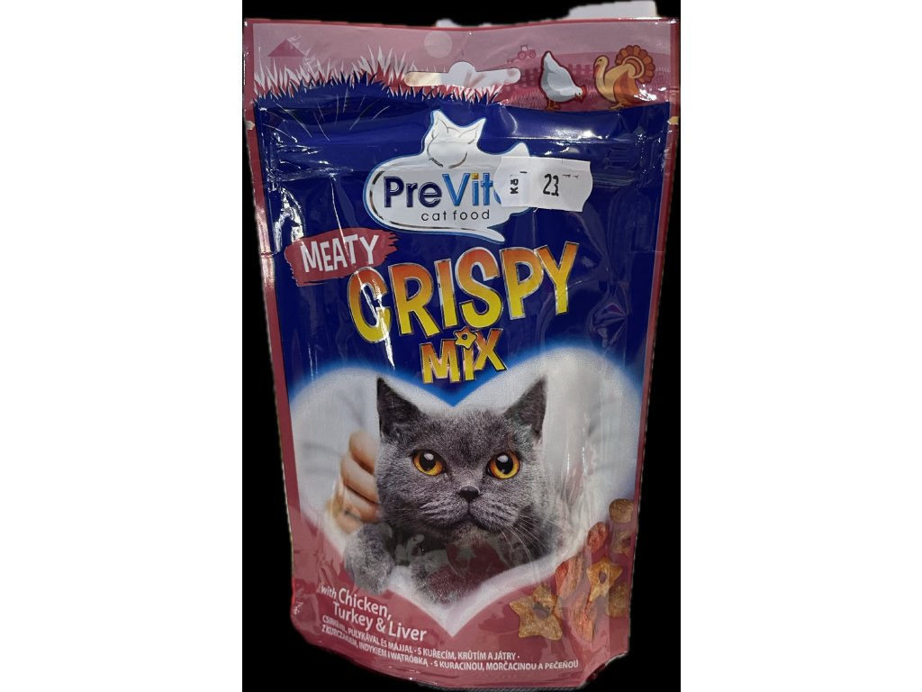 Pamlsek pro kočky ve formě křupavých granulí s kuřecím masem, krůtím a játry.